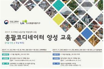 국토교통부와 LH도시재생지원기구가 2017 도시재생 뉴딜사업 역량강화 교육 일환으로 ‘총괄코디네이터’ 교육생을 모집한다.