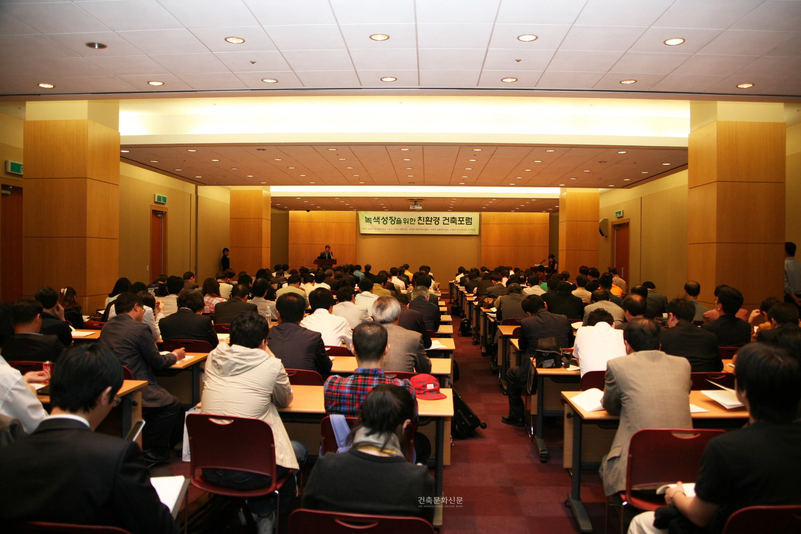 친환경 건축물의 접근방법과 에너지사용을 최소화하는 설계기법 등 각 분야의 전문가를 모시고 토론을 통해 대안을 모색하기 위한 ‘녹색성장을 위한 친환경 건축포럼’이 지난 10월 8일 코엑스에서 개최됐다. 대한건축사협회가 주최하고 대한건축사협회 친환경위원회가 주관한 이번 포럼은 한국건축산업대전2009 행사 일환으로 개최, 건축사, 학생, 건축 관계자 등 총 360여명의 관람객이 참석했다.