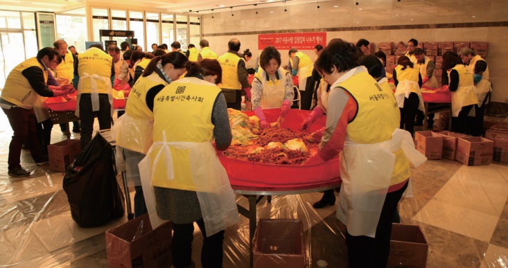 서울특별시건축사회는 12월 8일 서울 회원 및 건축사회 직원 50여 명이 참석한 가운데 건축사회관 1층에서 ‘2017 이웃사랑 김장김치 나누기 행사’를 진행했다고 밝혔다. 김장행사는 취약계층, 독거노인, 사회복지시설 및 기관에 나눠 줬다.