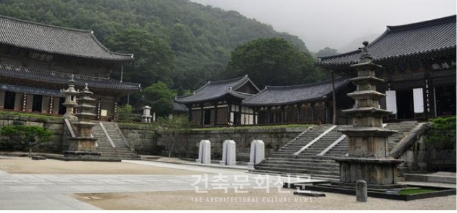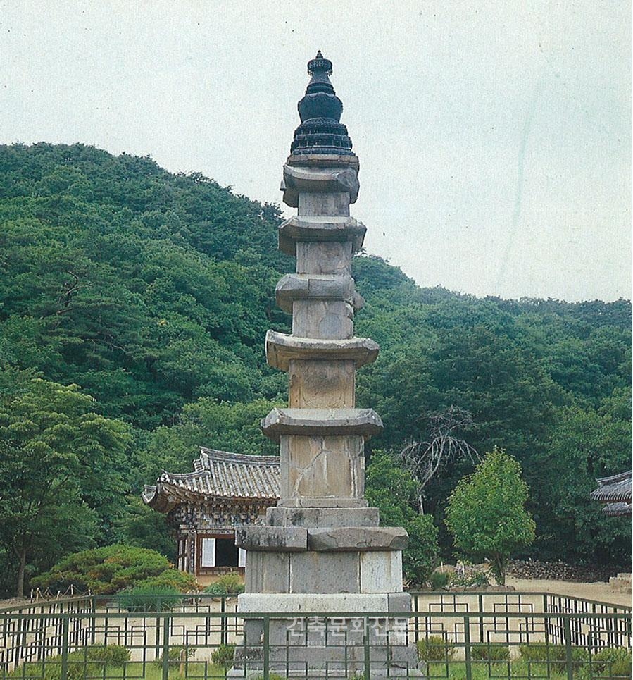 그런데 문제는 탑이 비뚤어져 세워 있다는 것이다. 많이 비뚤어진 것은 아니지만 대웅전에 대해서 좌우대칭도 아니고 서로 간에도 똑바로 놓여 있지 않았다. 보수자는 이거 예전 사람들이 혹시 측량을 잘못해서 그런 것은 아닐까.(걱정하기도 하고) 우리가 똑바로 고쳐 세우면 어떻겠느냐고 물어왔다. 나는 손 사레를 치면서 절대 그렇게 해서는 안 되고, 우리가 그 의도를 모르는 이상 그대로 두는 것이 옳다고 주장했다. 아마도 결과는 그렇게 보수했을 것으로 안다.
