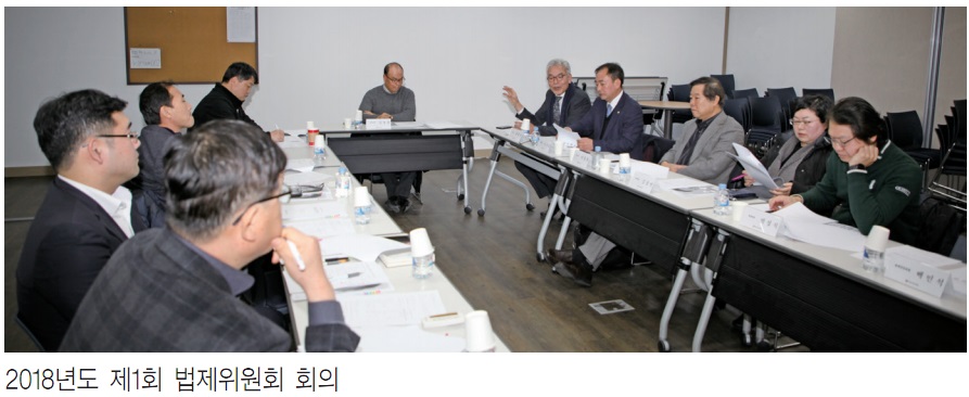 2018년도 제1회 법제위원회 회의가 2월 7일 오전 10시 30분 건축사회관 2층 세미나실에서 개최됐다. 이날 김영훈 법제위원장, 송영규 부회장과 이재효, 이동훈, 김동연, 김상호, 석한수, 박성식, 백민석 위원 등이 참석해 올해 법제위원회 운영방안과 대구지방경찰청 건축사법 위반에 대한 대처방안, 기획재정부 예산 관련 지침 개정건의안 검토 등을 논의했다.