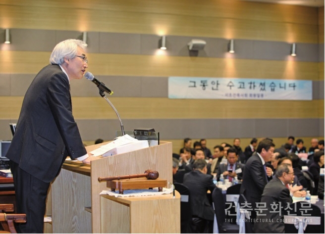 한국사회가 해결해야 할 핵심적 과제는 1990년 이후 한국사회는 이미 ‘건설의 시대’를 벗어나 ‘건축의 시대’로 바뀌었다는 사실을 인식하고 바뀐 사회다운 정책을 실현하는 일일 것입니다. 제가 대한건축사협회 제31대 회장의 직무를 수행한지도 어느덧 3년이 지났습니다. 저는 여러분들에게서 매일 배웠고, 여러분들은 저를 빛나는 협회 회장으로 만들었으며, 더 성숙된 건축사가 되게 했습니다.