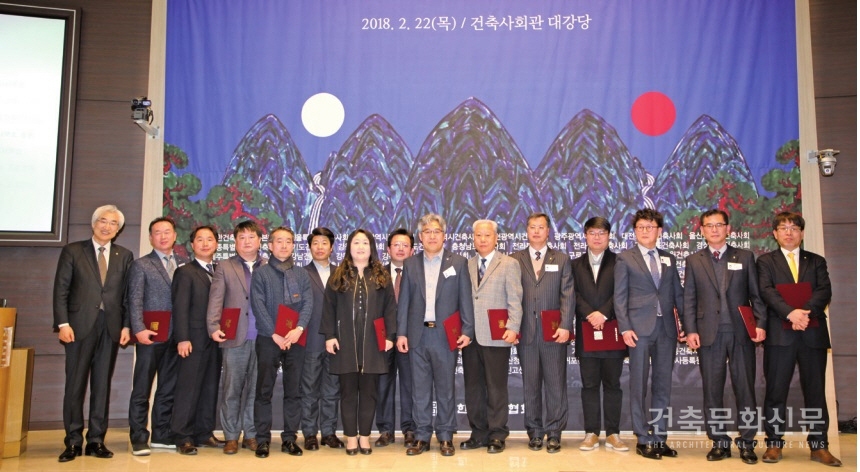 건축사협회는 이날 총회에서 김광우 서울대학교 건축학과 교수, 최찬환 서울시립대학교 건축학부 명예교수, 김수섭 변호사 등 18명에게 명예회원증을 수여하고, 단체표창(최우수상 ‘경기도건축사회’, 우수상 ‘전라남도건축사회’, ‘충청북도건축사회’)과 회원에 대한 공로패, 직원표창장을 수여했다. 또 장학생 대학 건축학과 학생과 고등학생 총 24명에게는 장학금을 전달했다.