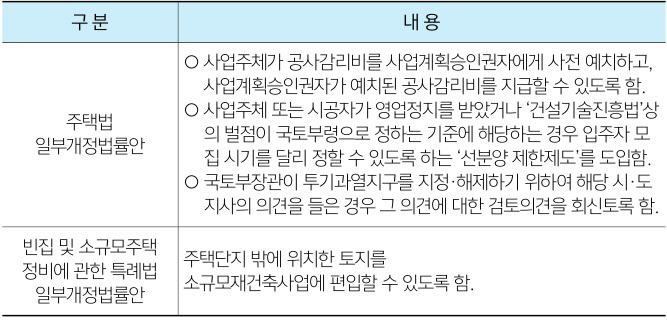또 사업주체 또는 시공자가 영업정지를 받았거나 ‘건설기술진흥법’상의 벌점이 국토부령으로 정하는 기준에 해당하는 경우 입주자 모집 시기를 달리 정할 수 있도록 하는 ‘선분양 제한제도’를 도입했다. 부실시공 문제를 일으킨 시공사에 대해 선분양을 제한하겠다는 의도다.