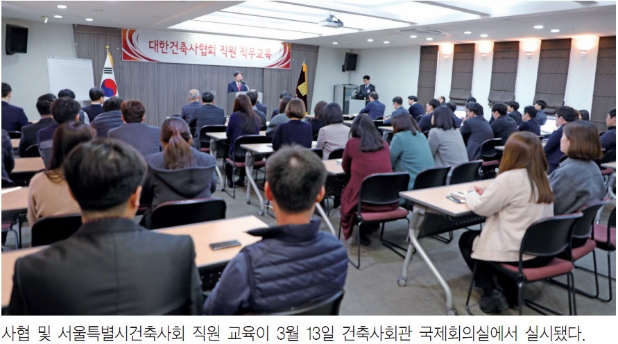 새로운 대한건축사협회(이하 사협) 집행부의 정책과제와 운영방향에 대해 직원과 소통하고 사무처의 업무 분위기를 혁신하기 위한 직원 직무교육이 3월 13일 건축사회관 국제회의실에서 마련됐다.