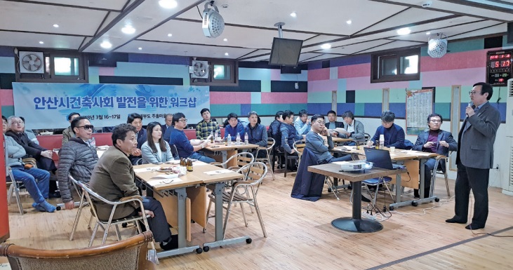 3월 16일부터 17일까지 양일간 대부도에서 안산 회원들과 관련기관 30여 명이 참석한 가운데 ‘2018 안산지역건축사회 회원 워크숍’이 개최됐다. 워크숍은 구성원들간의 단합과 친목을 다지며 조직력을 강화하고, 관련기관과의 긴밀한 이야기를 나누며 진행됐다.