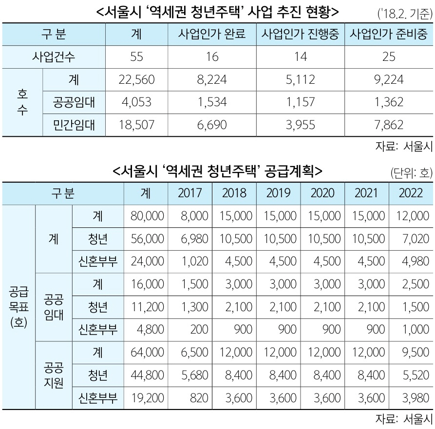 서울시는 2월 22일 발표한 ‘서울시 공적임대주택 5개년 공급계획’에 따르면 ’22년까지 역세권 청년주택을 1인가구 청년에게 5만6천호, 신혼부부에게 2만4천호를 공급한다.