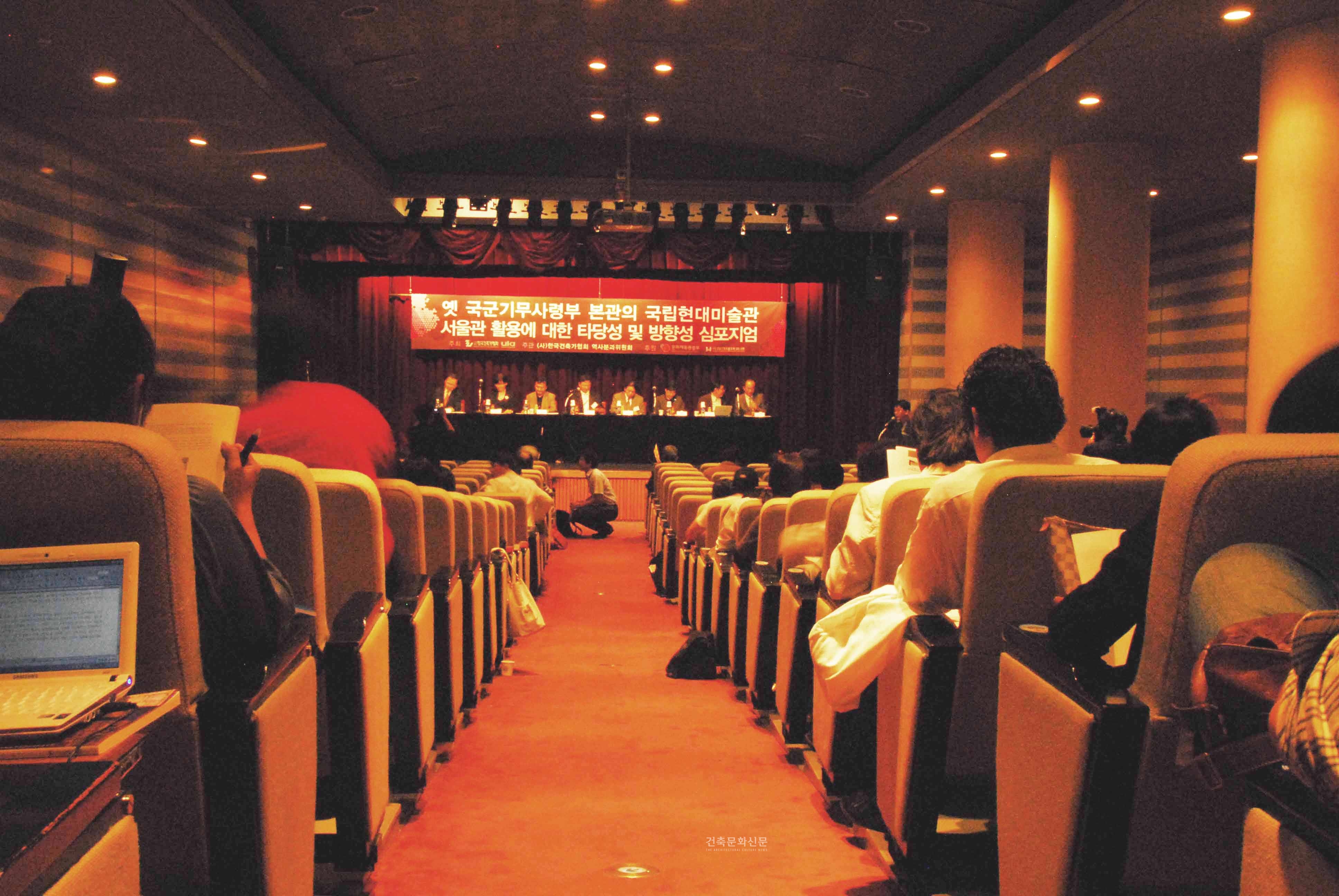 지난 9월 29일 국립민속박물관에서 ‘옛 국군기무사령부 본관의 국립현대 미술 서울관 활용에 대한 타당성 및 방향성’ 심포지움이 열렸다. 동아대학교 건축학과 김기수 교수의 사회로 진행된 이번 행사는 한국건축가협회 김창수 회장의 인사말과 배순훈 국립 현대 미술관 관장의 축사 그리고 김정동 목원대 교수의 기조 강연이 있은 후 제 1부 발표 제2부 토론순서로 이어졌다.