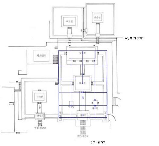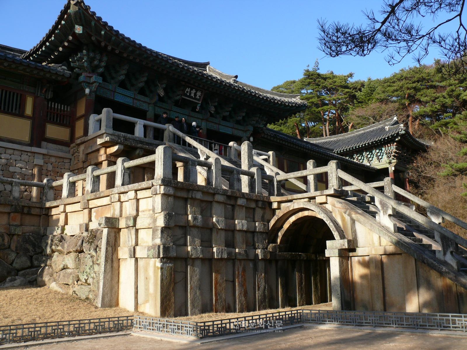 극락전은 유식학파에서 백성들을 위해 밀교계 사상을 흡수한 사역이다. 본전인 금당보다 한단 낮고 “백성들은 먹는 것이 하늘”이라는 철학을 반영하여, 연화칠보 다리를 건너 올라가 안양문을 들어서면 극락의 세계가 되는 것이다. 하단 신앙이다. 그러나 금당원은 청운, 백운교를 지나 신선들만 산다는 자하문을 지나면 빛(비로자나)이 주관하는 세계에 들어가는 것이다.