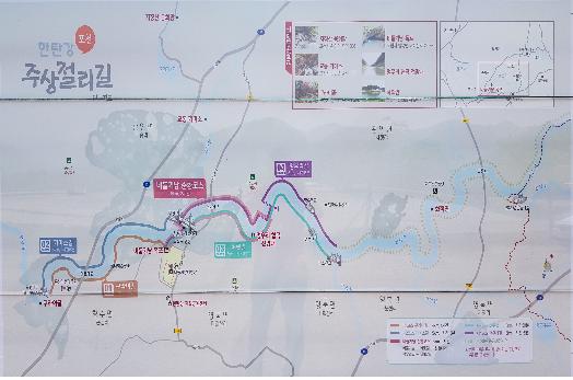 한탄강 주상절리길은 한탄강을 중심으로 남북으로 걸으며 때로는 하늘다리를 건너고 출렁다리는 건너며 작은 재를 넘는 한탄강 둘레길로서 4개 코스로 되어있고, 비둘기안 순환코스가 추가로 연결되어 있다.