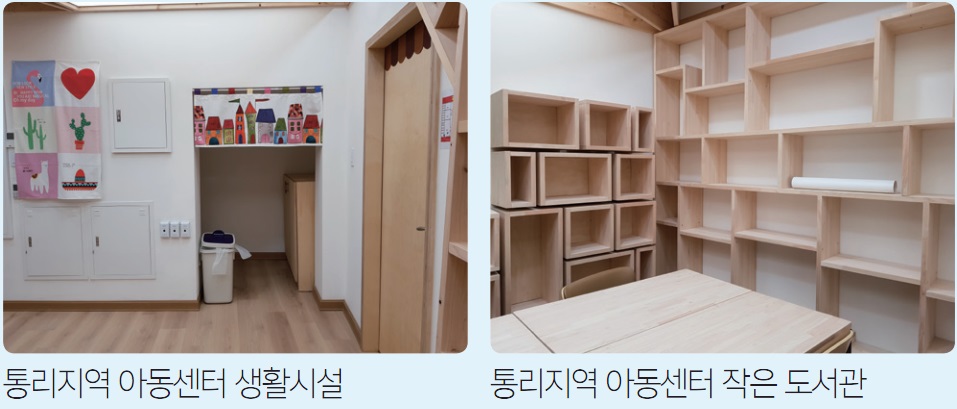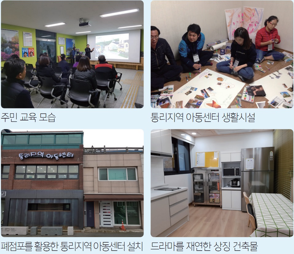 마을 커뮤니티 활성화 사업을 위해서 사용하지 않고 있는 주민센터를 활용하여 마을 커뮤니티 센터가 조성됐고, 주민 카페와 휘트니스센터가 설치돼 주민이 운영에 참여하고 있다. 또한 통리역 앞의 빈 점포 등이 마을 도서관과 아동센터, 인포메이션 센터로 활용되고 있어 주민들의 커뮤니티 활동에 역할을 부여하고 있다.
