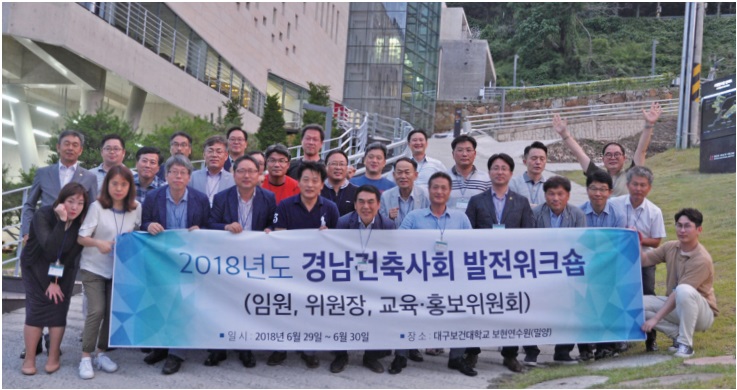 경상남도건축사회 발전워크숍이 6월 29일부터 30일까지 이틀간 개최됐다. 행사는 밀양의 대구보건대학교 보현연수원에서 진행됐으며, 경상남도건축사회 임원, 위원장 등을 비롯해 30여 명이 참석해 건축사회의 발전방향을 모색하고 2018년 사업계획 실천을 다짐했다.