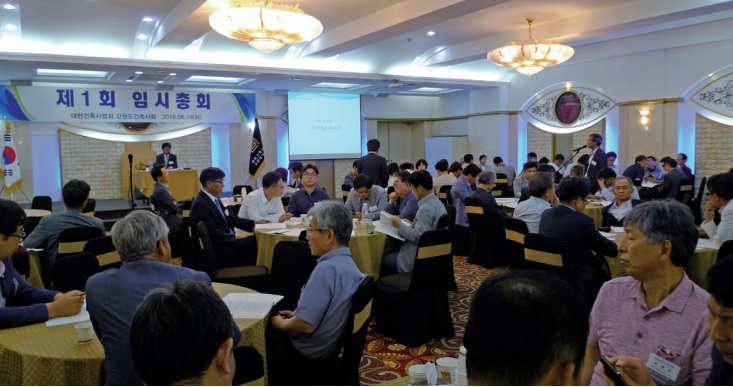 6월 19일 강원도건축사회의 2018 제1회 임시총회 및 경조회 임시총회가 원주 웨딩타운 3층 회의실에서 개최됐다. 회원 305명 중 107명이 참석했으며, 기금적립금 처리, 2018년도 제1차 추가경정 예산 등이 원안대로 승인됐다. 원주의 서형석 건축사가 이사로 선출됐다.