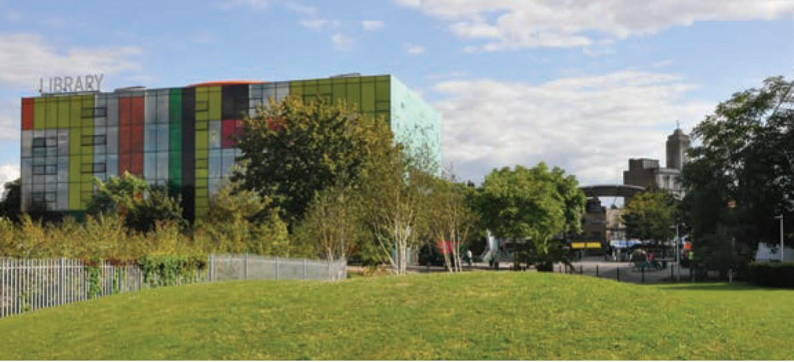 ◇ 런던의 템즈강 남쪽 지역은 공장들이 밀집해 있고 이민자와 노동자들이 많이 거주하는 지역으로, 2000년대 초반까지 범죄율이 높은 낙후지역으로 여겨지곤 했다. 서더크의 페컴지역은 그 중에서도 소득이 낮고 주거환경이 좋지 않은 곳이었으나, 2000년대를 전후로 일어난 영국의 도시재생 패러다임은 낙후된 이 마을에도 변화를 가져왔으며 이 중심에 도서관이 있었다. 영국에서는 1997-98년 ‘새로운 도서관 운동’ 이후, 공공도서관이 지역 재생의 핵심 시설이 됐다. 주민들이 떠나고 슬럼화되는 마을을 다시 살리는 데 공공도서관이 큰 몫을 하고 있다. 페컴도서관은 지역의 중심 가로인 페컴 하이스트리트(Peckham High Street)와 페컴 힐스트리트(Peckham Hill Street)의 노드에 위치하며, 1층 일부를 필로티로 조성해 페컴광장과 직접 연계되도록 계획했다. 주민들의 접근성이 강화됐고, 주변 도시공간으로의 커뮤니티 확장을 유도했다. 기획 단계부터 이루어진 주민들과 끊임없는 의견 교환을 통해 사업을 총괄한 서더크 구와 도서관 설계를 맡은 건축사사무소 모두 도서관 조성을 지역 주민들의 공간욕구를 실현할 수 있는 사회적 장소로 생각했다. 개관 후에는 독서그룹 운영, 대출관리, 열람실 운영 등의 도서관 관리를 부분적으로 주민 자율에 맡겨 주민이 애착을 갖고 지역 문제를 개선해나갈 수 있도록 하고 있다. 영국왕립건축학회에서 수여하는 최고 권위의 건축상인 스털링상(2000년)과 시빅트러스트상(2002년)을 수상했다.