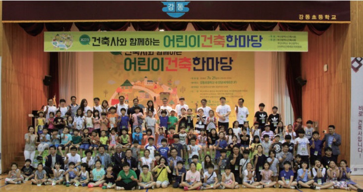 부산광역시건축사회는 7월 21일 해운대 강동초등학교 강당에서 ‘건축사와 함께하는 어린이건축한마당’을 개최했다. 행사는 어린이와 학무모의 건축의 이해를 향상시키기 위한 것으로, 부산 내 재학중인 초등학생 113명이 참가했다. 최우수상은 석찬유(강동초, 3학년) 외 7명이 수상했다.