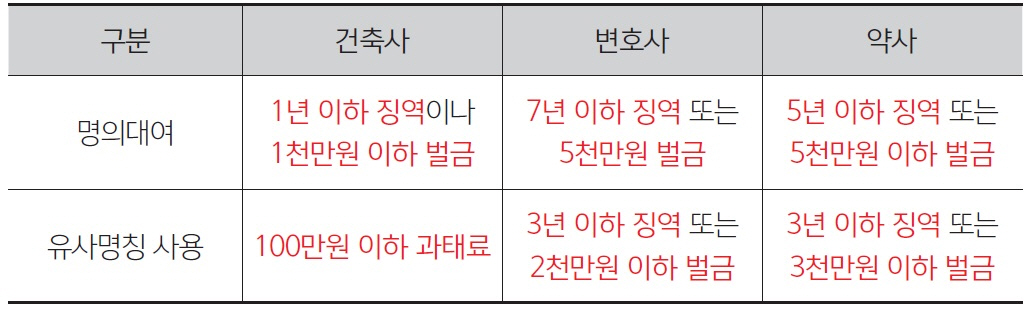 사실 다른 전문자격사와 비교하면 건축사 명의대여와 유사명칭 사용에 대한 처벌은 솜방망이다.