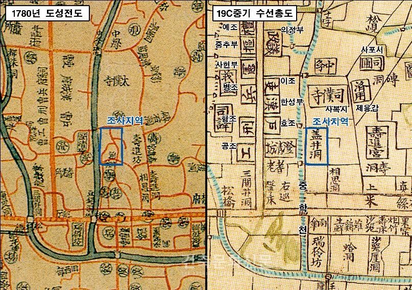 필자는 1990년 경희궁 숭정전 발굴을 필두로 최근에는 청진동 재개발지구에 대한 대부분의 발굴을 진행하고 있다. 발굴은 보통 지구별로 진행되는데 매 지구에 대해 3~4차례의 설명회(지도위원회)를 갖는다. 이때는 전문가 집단인 지도위원 뿐만 아니라 일반인에게도 공개되고 발굴 결과에 대한 설명을 한다. 얼마 전 종로구청 앞 청진1지구 발굴 지도위원회에는, 중요한 유물이 많이 출토되었으므로, 원로 분들을 많이 모셨다. 이 가운데 우리 건축고고학의 원로이신 김정기 대장원수께서도 참석했다.(대 원로일 뿐 아니라 문화재연구소장을 역임하셨고 퇴임 후에도 여러 분의 소장이 배출되었기 때문에, 지금쯤은 대장이나 원수 정도는 되어야 하지 않겠는가 해서 붙인 우리끼리의 별호이다) 약간 귀가 어두우셔서, 우리 팀장이 설명한 600년전 조선 초의 지적도를 그린 작업을, 잘못 들으셨는지 조선 초의 지적도를 찾았다고 대단히 칭찬을 하시는 것이었다. 팀장은 발굴지의 모든 지도와 항공사진, 지적도를 역 역사 순으로 나열하여 발굴지의 실측도를 겹쳐 가면서 설명을 했는데, 조선 초에 다다르면 더욱 실측 지적도가 명확하게 나타난다. 그만큼 보존 상태가 좋다는 말이 되는데, 이것을 듣기에 따라서는 당시에 지적도를 찾은 것처럼 말씀하셔서 모두들 박장대소를 했다.