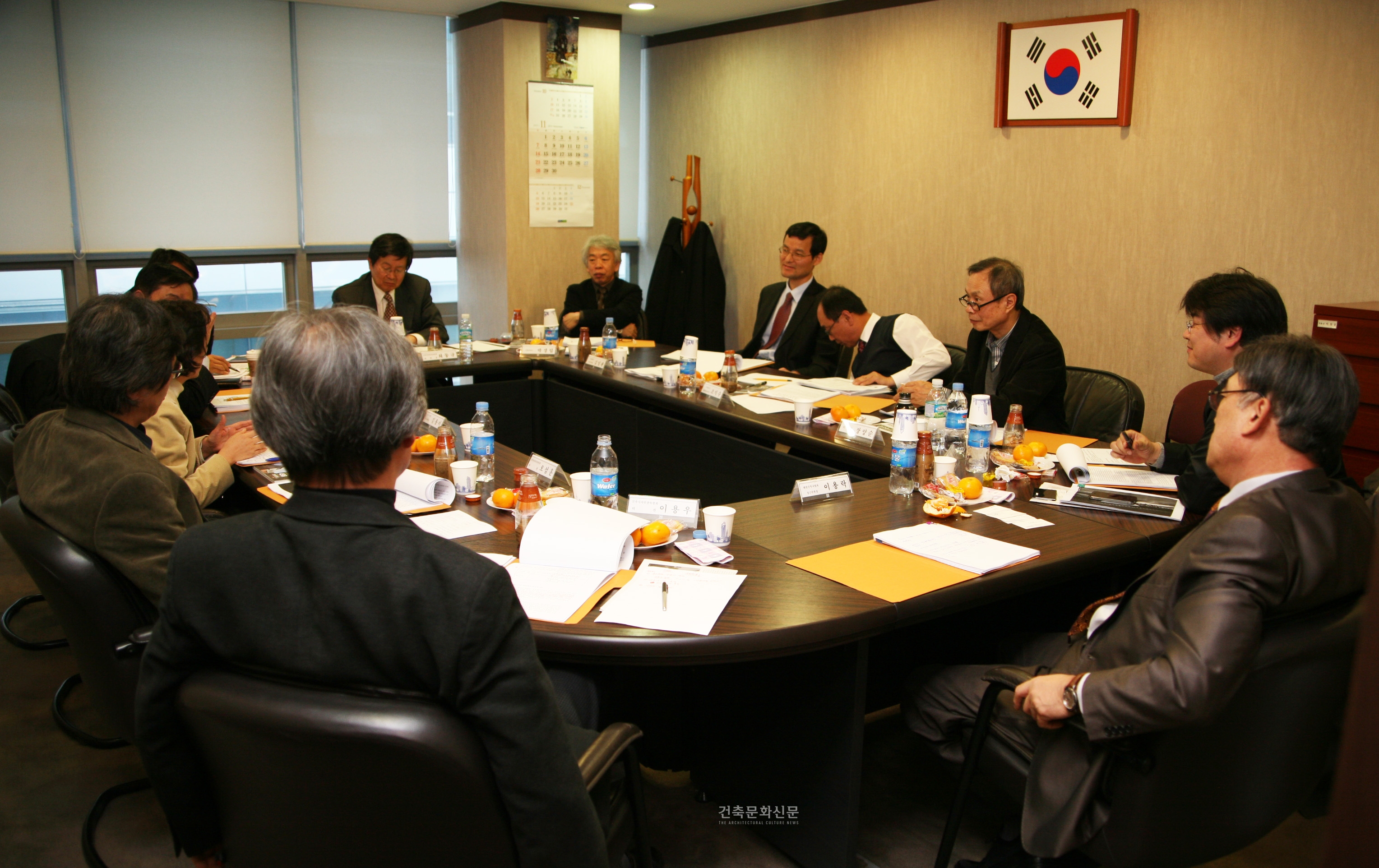 대한건축사협회가 발행하고 있는 ‘「건축사」지 500호 특집 좌담회’가 지난 11월 17일 건축사회관 8층 임원실에서 ‘건축설계경기 및 감리제도의 나아갈 길’이란 주제로 개최됐다. 이날 좌담회에는 최동규(서인건축/좌장), 김용미(금성건축), 박인수(주.파크이즈건축), 오섬훈(주.어반에스건축), 이용우(칸도시건축), 장양순(창건축), 조익수(엄앤드이 종합건축), 전영철(대한건축사협회 상근이사), 박경립(강원대 교수), 김기수(동아대 교수), 김일환(국토해양부 건축기획과장) 등 11명이 참석, 열띤 토론을 펼쳤다.