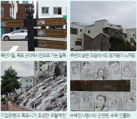 목포 문화원을 나와 옥단이길을 다시 걷는다. 목포항에서 불어오는 바다 내음과 일본식 가옥이 조금씩 나타나기도 하고, 가로의 단차를 이용해 시원한 물이 흐르는 벽천도 나타난다. 목포시내 전역에서 진행되고 있는 수묵전시행사와 관련된 홍보물 등도 볼거리에 한몫을 한다.