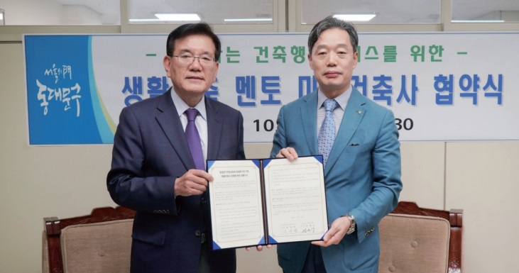 동대문구지역건축사회는 10월 12일 구청 기획상황실에서 동대문구와 업무협약을 체결했다고 밝혔다. ’마을건축사‘는 건축사의 재능기부로 주민들이 집이나 생활 속에서 접하는 건축문제를 알기 쉽게 조언해주고, 일상 속에서 건축현장의 문제점을 직접 살피는 생활건축 멘토이다.