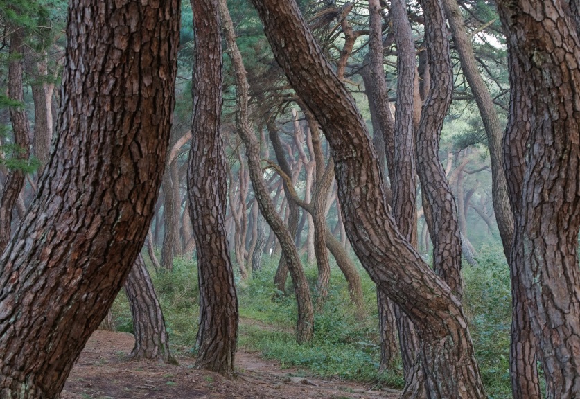 경주 삼릉 소나무 숲. 새벽안개 사이로 무리 지어 서있는 노송들. 가까이 다가가니 긴 세월, 땅에 뿌리내리고 살아온 인내의 흔적이 보인다. 껍질이 군데군데 벗겨지고 허리 굽은 소나무는 할머니를 닮았다. 검버섯, 주름 가득한 손으로 잘 익은 홍시 하나 슬며시 건네주시던 할머니. 가을이 다가오는 서늘한 소나무 숲에서 할머니의 손길이 느껴진다.