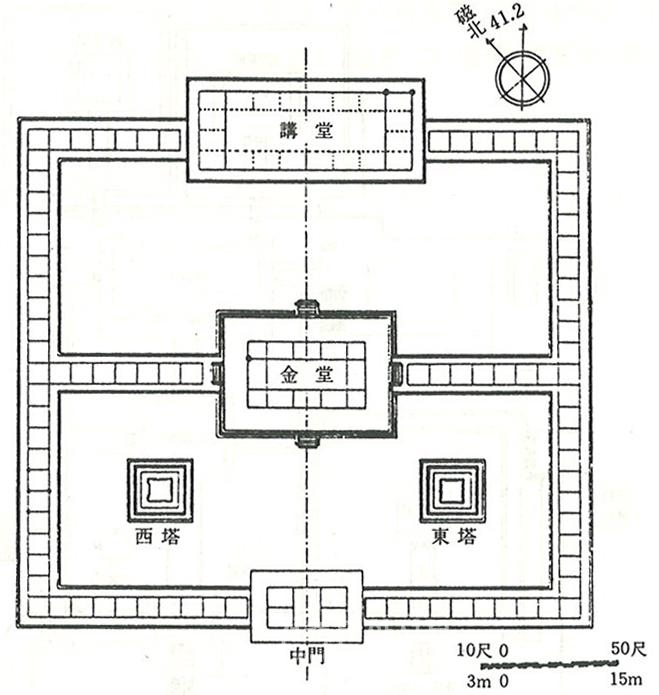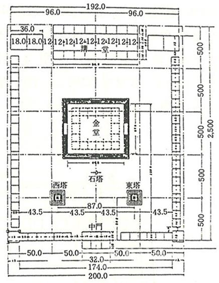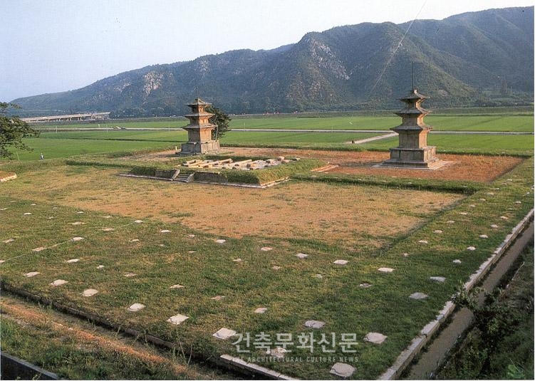 사천왕사는 금당을 중심으로 전면에는 2개의 목탑이, 뒤쪽에는 2개의 경루가 있어서 높은 탑이 사방에서 시립하는 듯하고 감은사는 금당을 정 가운데에 두고 사이에 회랑을 쳐서 강당 공간의 독립성을 확보했으며 쌍탑 공간은 상대적으로 작게 구성되었다. 석탑의 시원이라고 불리는 커다랗고 당당한 탑을 작은 마당에 가둬서 차라리 답답할 정도이다. 사천왕사는 알려진 바와 같이 밀교密敎계 사찰이고 감은사는 유가계 사찰인데 왜 이같이 유사한 점이 있을까? 밀교에서도 삼밀유가를 설하고 있기 때문에 형식에 있어서는 유사한 형태를 띨 수밖에 없을 것이다.