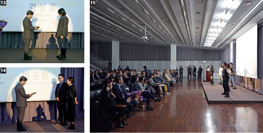 이어 서울국제건축영화제 개최와 건축문화진흥을 위해 공헌을 기리기 위한 공로패와 감사패 수여식도 있었다. 공로패는 추계예술대학교 김성호 교수와 이상훈 건축연구소의 이상훈 소장이 받았으며, 주.삼우종합건축사사무소의 이건섭 상무와 주.쿤스트종합건설의 이희석 대표이사, 주.지오인터내셔널의 박군희 대표이사를 대신한 윤수아 부대표가 각각 감사패를 받았다. 이후 예술융합 연구소 새론에서 축하공연이 이어졌으며, 트레일러 상영과 윤재선집행위원장과 전하영 수석 프로그래머의 영화제와 상영작 소개가 이어졌다.