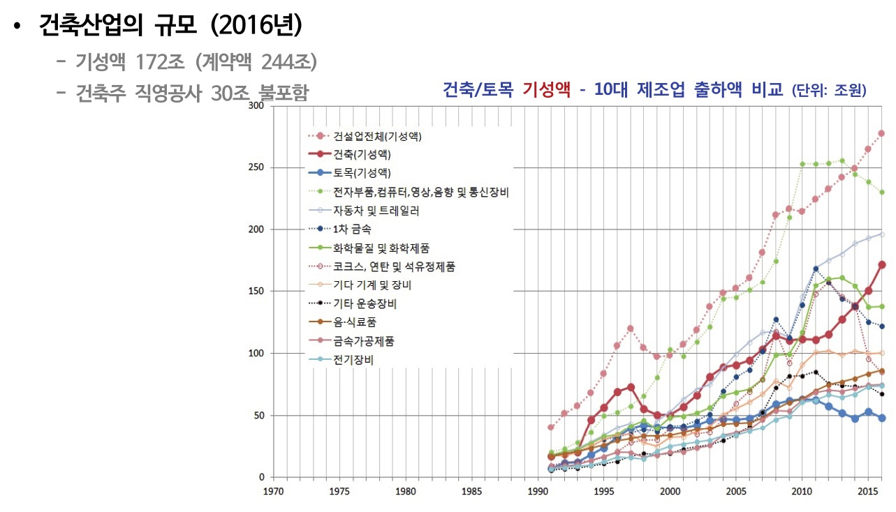 건축 산업 규모 245조, 토목산업의 4배 규모에 비해