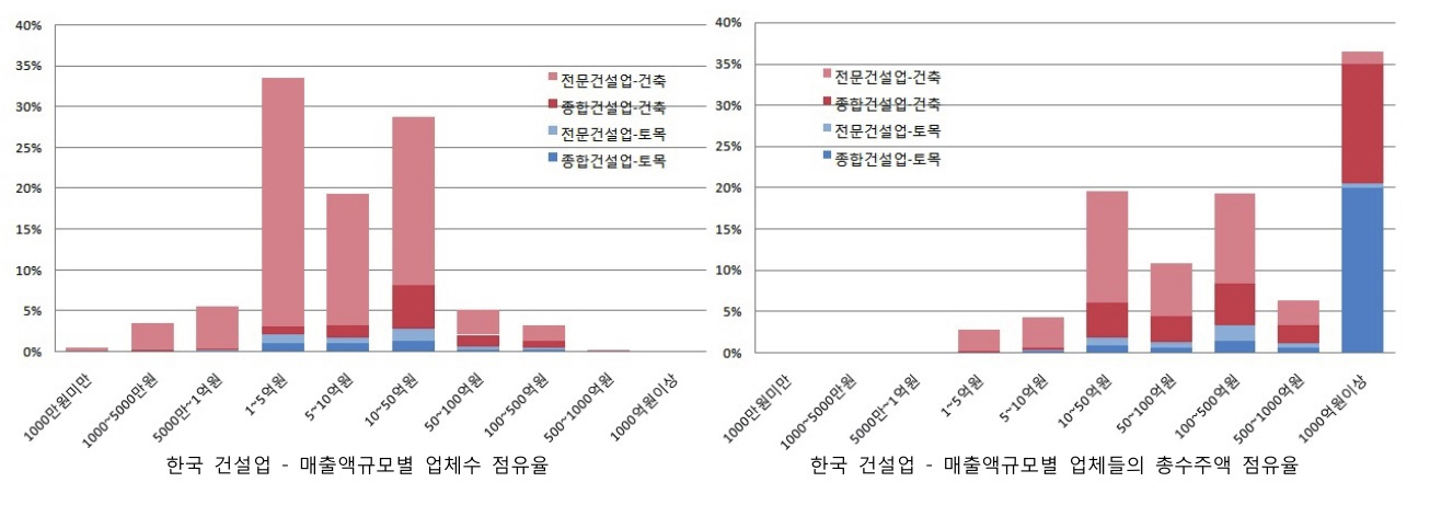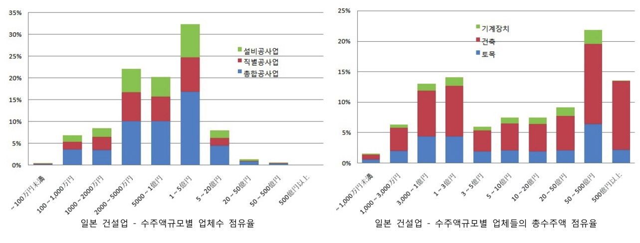 우리나라 건설산업은 양극화되어 있다. 소규모건축공사가 영세한 업체들에 의해 헐값에 낮은 부가가치로 유지되고 있다. 건설업과 설계업의 면허를 대여하는 일들이 횡행하는 것도 공공연한 사실이다. 일본은 우리나라와 전혀 다른 구조를 보이고 있다. 일본은 중소규모의 탄탄한 건설업체들이 꽤 많아 양극화가 심하지 않다.