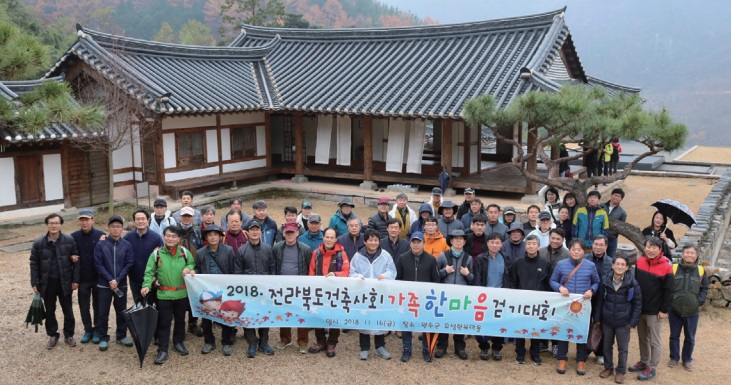 전라북도건축사회가 11월 16일 하반기를 맞아 오성한옥마을과 술래길 일대에서 ‘2018 전라북도건축사회 가족 한마음 걷기대회’를 개최했다. 걷기대회는 건축사 회원과 가족이 함께 동반 참여하는 행사로 총 67명이 참석했다.
