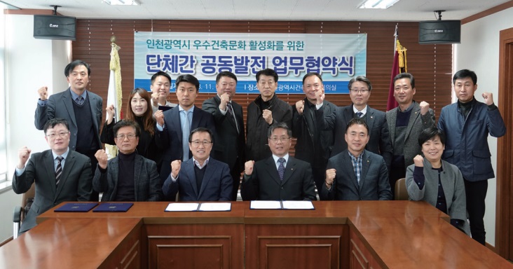 인천광역시건축사회는 11월 29일 인천광역시건축사회 대회의실에서 8개의 우수추천자재 업체와 업무협약을 체결했다. 협약을 통해 건축사회는 업체들의 제품을 적극 적용하여 상생발전을 도모한다는 계획이다. 업체는 경원알미늄, 보현석재 등 대한건축사협회에서 우주추천자재로 선정된 업체 8곳이다.