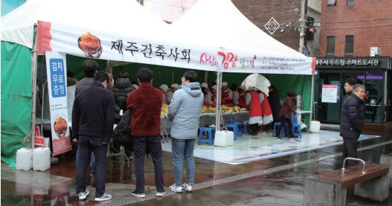 12월 8일 제주시청 어울림마당에서 제주특별자치도건축사회 회원 50여 명이 참석해 ‘사랑의 김장 나눔 행사’가 진행됐다. 행사는 회원들이 500포기의 김치를 직접 담근 후 300포기를 저소득층 가구, 탈북주민, 아동그룹에게 200포기는 현장을 찾은 65세 이상 어르신들에게 전달하며 진행됐다.