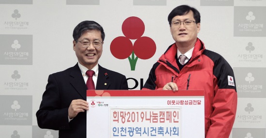 연말을 맞아 인천광역시건축사회가 12월 10일 인천사회복지공동모금회에게 ‘희망 2019 나눔 캠페인’의 일환으로 성금 300만원을 전달했다. 전달된 성금은 소외계층에게 전달될 예정이다. 류재경 회장은 “지역 내 소외된 분들에게 조금이나마 도움이 되면 좋겠다”고 전했다.
