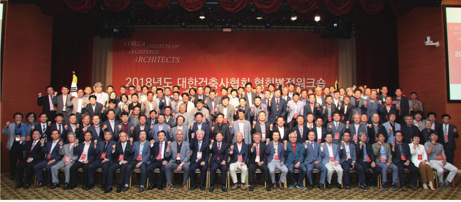 2018년도 대한건축사협회 협회발전워크숍에는 본 협회 임원·위원장·부위원장, 시·도건축사회 임원, 지역건축사회 회장을 포함한 300여 명의 건축사들이 워크숍 주제를 두고 협회 정책방향과 전략 등을 논의했다.