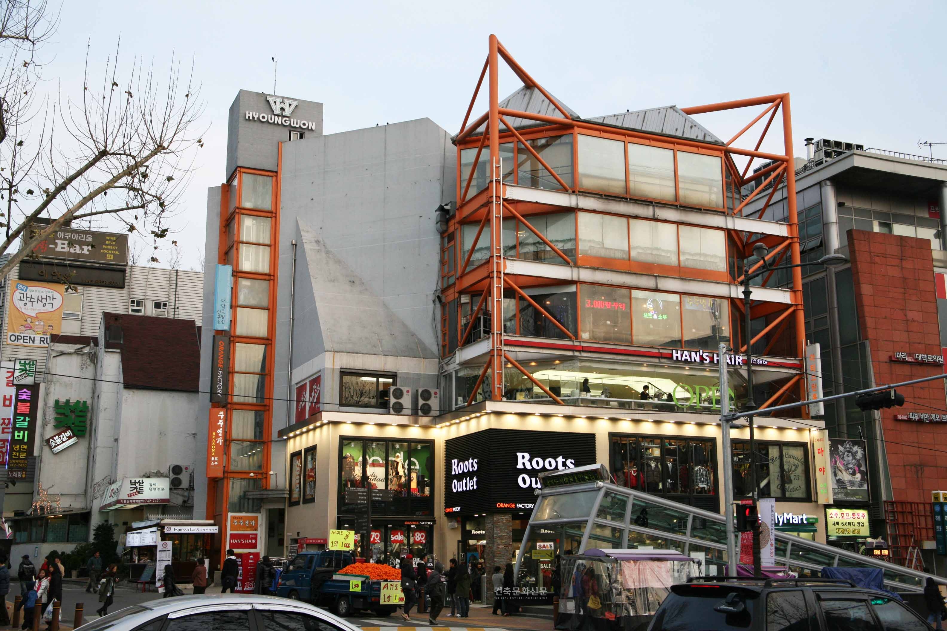 젊음의 거리에 어울리는 경쾌하고 가식 없는 건축물