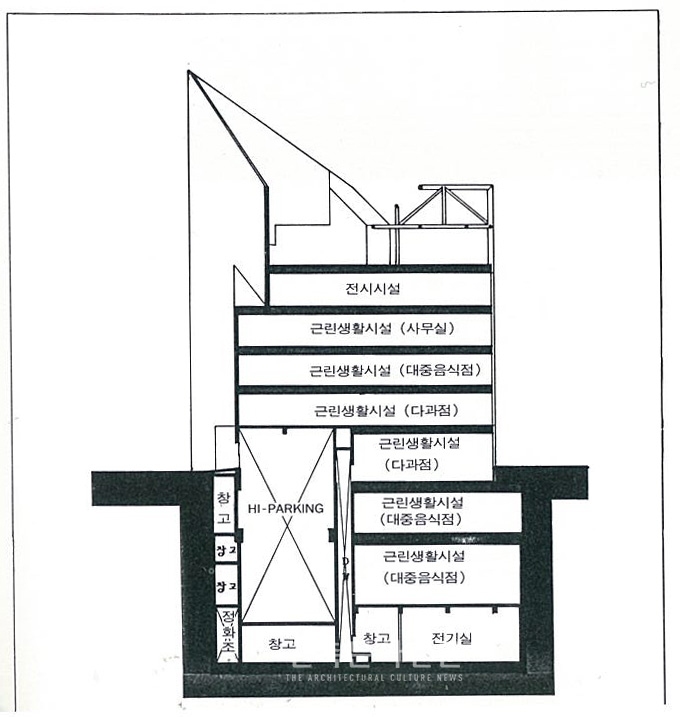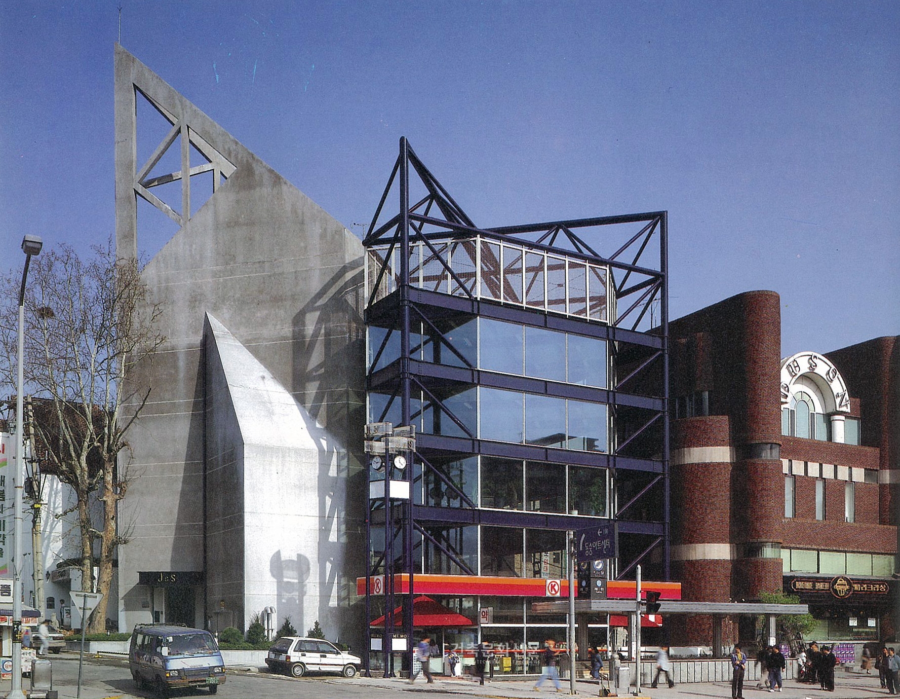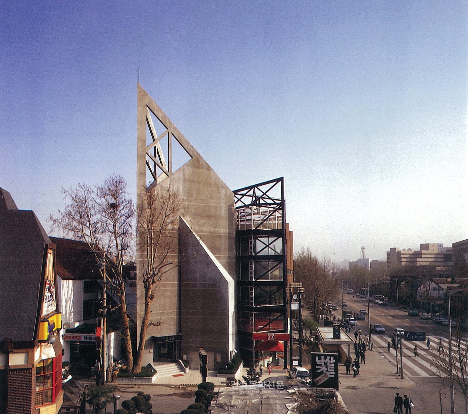 “기하학적 상상력을 염두에 두고 설계에 임하였다. 젊음의 거리에 어울리는 경쾌한 건축물, 그러기 위하여 가능한 군더더기 없애고, 뼈대를 솔직히 드러내는 가식 없는 건물, 젊은 기분을 한껏 나타내는 건물을 의도하였다.” -조건영(설계소묘/공간 90년 5월호)