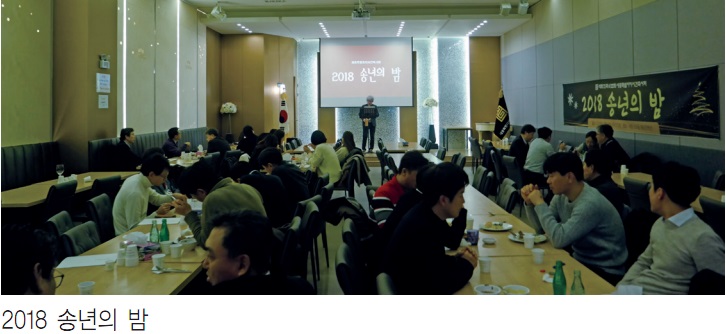 세종특별자치시건축사회는 2018년 12월 20일 세종 오티움웨딩컨벤션에서 ‘2018 송년의 밤’을 가졌다. 이날 세종시건축사회 회원 50여명이 참석한 가운데 건축사실무교육과 2018년도 활동영상 상영 및 신입회원 소개, 회원 연주회를 가졌다. 박진만 세종시건축사회 회장은 “회원들의 적극적인 동참으로 첫 건축문화제 성료 등 많은 것을 이뤘다”면서 “2019년에도 회원들의 단합과 협회의 발전을 위해 최선을 다하겠다”고 말했다. 한편, 세종건축사회는 2019년 1월 4일 오전 11시 세종시건축사회관에서 출범 4주년 기념식을 가질 예정이다.