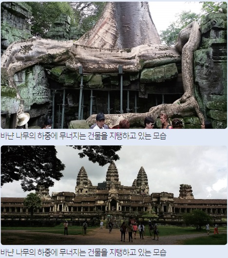 캄보디아의 시엠립(Siem Reap)에서 밀림속으로 몇 분을 달리다보니 차창 밖으로 거대한 나무들이 나타난다. 바냔 나무(Banyan Tree)이다. 바냔 나무의 모습이 가득한 곳으로 들어서면 호수를 끼고 나타나는 신비스러운 기운이 감돈다. 앙코르와트의 모습이 서서히 물에 반영되고 나무위에서는 원숭이들의 모습이 사람이 모여드는 곳임을 느끼게 한다.