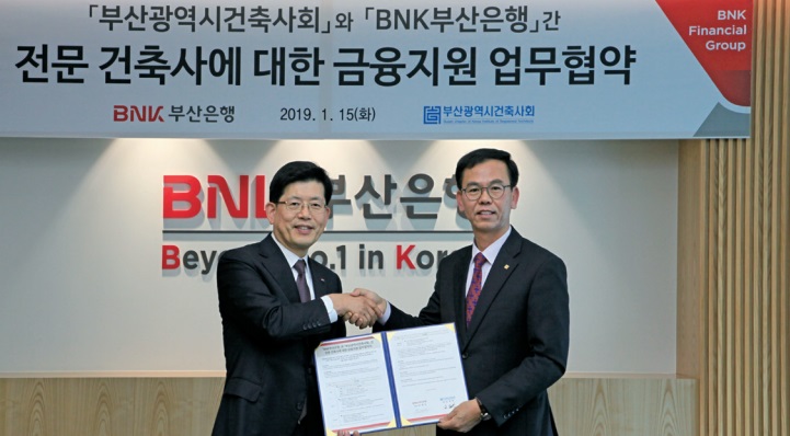 부산광역시건축사회와 부산은행이 부산광역시건축사회 회원들에 대한 금융지원 업무협약을 1월 15일 부산은행 본점 대회의실에서 체결했다. 이날 협약을 통해 부산은행은 대출상품 금리우대(최대 0.2%), 신용카드 서비스 우대, 환전·송금 수수료 감면 등 금융혜택을 부산광역시건축사회 소속회원들에게 제공하며, 부산광역시건축사회는 부산은행이 제공하는 금융상품과 서비스를 회원들에게 홍보, 안내하고 상호발전을 도모하기로 했다.