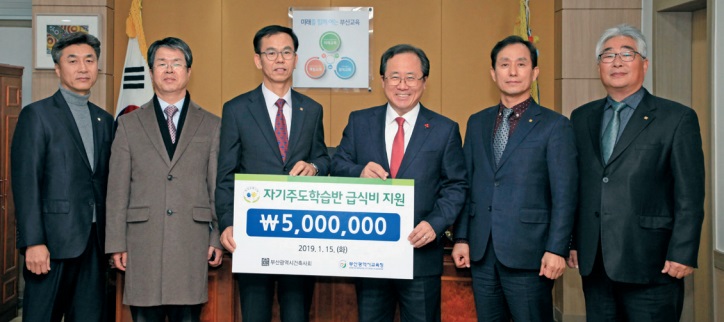 부산광역시건축사회는 1월 15일 부산광역시교육청을 찾아 ‘자기주도학습반’ 학생들을 위한 급식비 500만 원을 전달했다. 이날 전달된 기부금은 교육여건 취약지역에 있는 부산 서구 천마초와 토성초, 동구 선화여중 등 3개 학교의 자기주도학습반 식비로 지원될 예정이다. 한편, 부산광역시건축사회는 급식비 후원을 포함해 후원물품 기증, 연탄봉사, 사회복지기관 방문 및 물품 전달, 저소득층 자녀 급식비 지원 등 다양한 ‘마음愛 나눔’ 사업을 진행하고 있다.