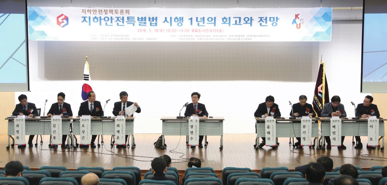 (사)한국지하안전협회가 1월 16일 국회도서관 회의장에서 개최한 토론회에서는 지난해 1월 도입된 '지하안전관리에 관한 특별법'에 대한 제도적 보완사항과 개선방안 등이 논의됐다.
