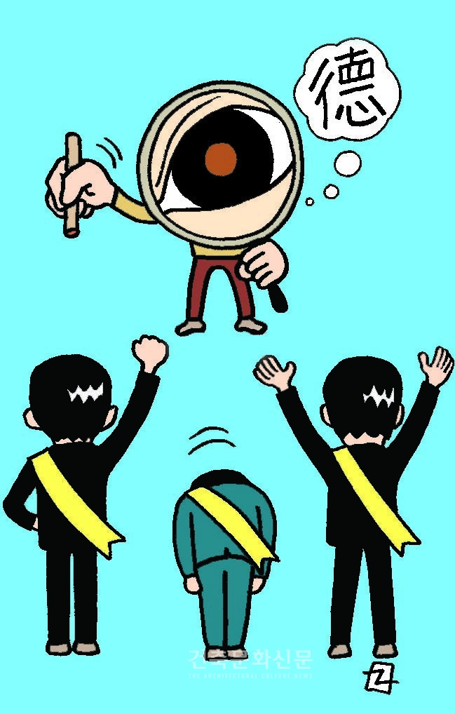 불과 한 달 여 뒤면, 2년간 대한건축사협회를 이끌 회장을 선거한다. 사상최대의 회원들이 후보로 나선다 한다. 어차피 회장이 되면 관례에 따라 이사 위임권이 부여될 것이다. 간언하기를 두려워 않는 강직한 이사를 기용하고, 토끼처럼 큰 귀로 이를 경청할 수 있는, 큰 덕을 갖춘 후보가 누구인지 잘 선택하여 박수 받고 퇴임하게 하는 것이 대의원의 의무이다.