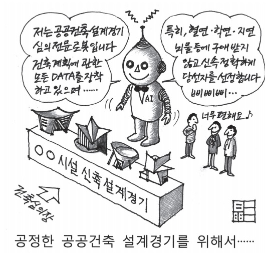 주요기사 도시공간 디자인 품격 향상 위한 총괄계획가 지원 사업 공모 국민 안전 위협하는 위반건축물, 사전 예방 위한 규제완화에 ‘기대’ [특별칼럼] 대한건축사협회가 설계공모를 주관하는, 비현실적이지만 아주 상식적인 상상 [사설] 건축사의 눈앞에 직면한 문제해결도 골든타임 ‘2025 대한민국목조건축대전’ 대상에 치유의 집·산림복지종합교육센터 선정 서울특별시건축사회, 서울시건축사회장기 당구대회