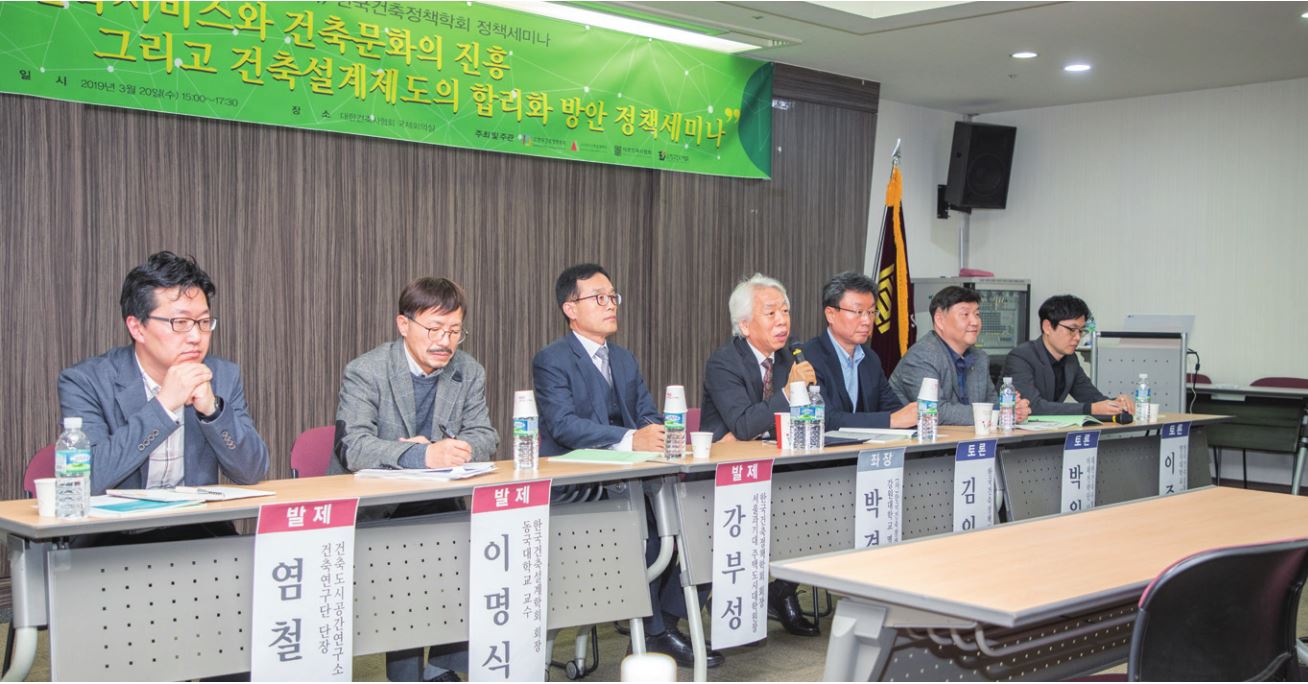 ‘건축서비스와 건축문화의 진흥 그리고 건축설계제도의 합리화방안’이란 주제로 (사)한국건축정책학회, (사)한국건축설계학회, 대한건축사협회, (사)한국건축가협회가 3월 20일 건축사회관 국제회의실에서 공동주최·주관한 세미나에서 전문가들은 건축서비스산업이 열악한 원인으로 기본 통계체계 부재와 인허가·심의제도 기준의 부재 등을 제기하며, 개선의 필요성을 한목소리로 강조했다.