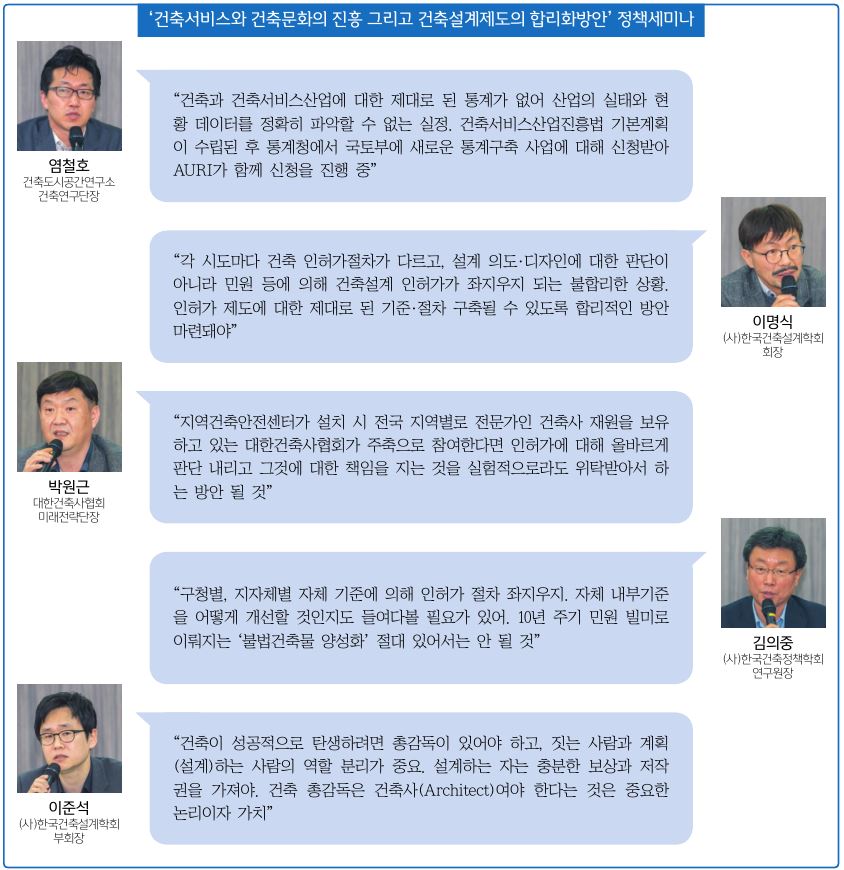 “건축 산업에 대한 제대로 된 통계가 없다. 토목, 건설과 합쳐져 있다. 건축서비스산업 실태가 어떠한지 파악할 수 없는 상황이다.” _ 염철호 건축도시공간연구소 건축연구단장