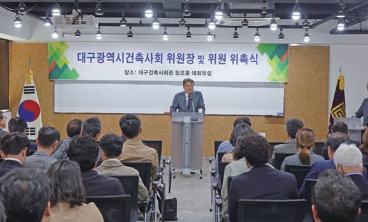 4월 9일 대구건축사회관에서 위원회 위원장 및 위원·건축정책전문위원 위촉식이 열렸다. 행사는 대구광역시건축사회(회장 공정섭) 임원을 비롯한 각 위원회 70여 명이 참석한 가운데 개최됐다.
