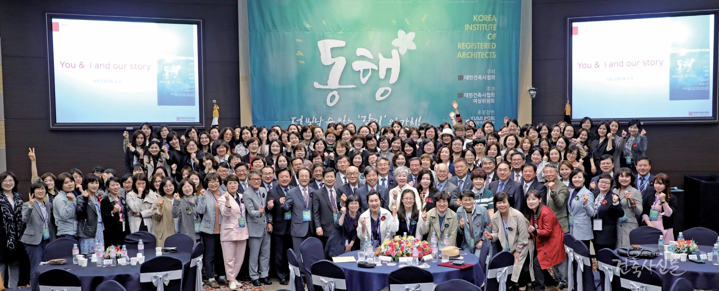 4월 23일 서울 건축사회관에서 열린 ‘2019 대한건축사협회 전국 여성건축사워크숍’. 이날 모인 300여 명의 여성건축사 회원들은 대한건축사협회 내에서 하나가 되어 전 회원과 협회발전에 힘을 보태는 ‘동행의 가치’에 뜻을 함께 했다.