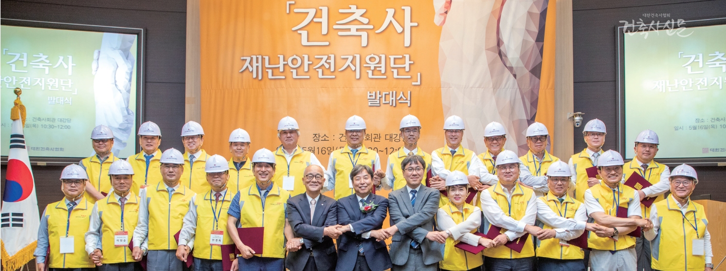 대한건축사협회는 5월 16일 서울 서초구 대한건축사협회 대강당에서 국민의 안전과 재산을 보호하는 건축사의 사회적 책임을 다하기 위해 ‘건축사 재난안전지원단’ 발대식을 열고 이 같이 다짐했다.