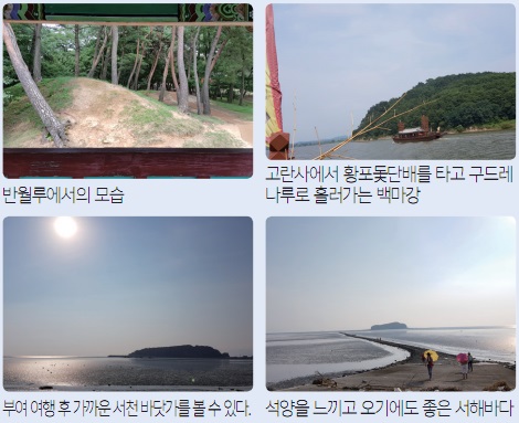 고란사를 내려오면 백마강 선착장이 있다. 이곳에서 배를 타고 구드레나루까지 가면 시원한 백마강의 강물과 낙화암을 바라보며 여유로운 여정을 마무리해 볼 수 있다.