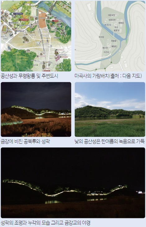 시원한 바람에 불어오는 야경 빛을 공산성과 공주산성시장, 무령왕릉, 그리고 한옥마을까지 자연스럽게 흘러가면서 보았다. 금강에서 바라보던 공산성의 아름다운 성곽불빛과 누각의 은은한 모습이 금강에 비춰진 모습은 9시가 넘어서니 더욱 선명해져서 야경이 절정에 이르렀다. 산성시장 주변은 도심으로서 간판과 가로등 이외에는 인적이 드물고 차량도 드물어 조용한 소 도읍의 모습으로 다가왔다.